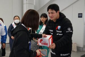 令和7年12月21日(日)ヤマハスタジアムにて開催された、NTT JAPAN RUGBY LEAGUE ONE 2025-26 D1 第2節 静岡ブルーレヴズvs東芝ブレイブルーパス東京の試合開始前に赤い羽根共同募金の街頭募金活動を実施しました。