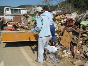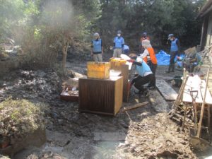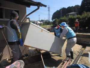 今までに行われた活動の様子を少しご紹介させていただきます。今回ご紹介するのは、災害ボランティアセンターの様子と家財の運び出しや仮置き場への運搬に関するお手伝いの様子です。「家族だけでは運べなかったのでとても助かる。」とのお言葉もいただいています。