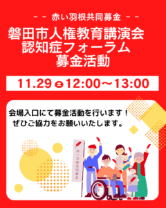 11月29日(土)磐田市人権教育講演会 認知症フォーラムにて募金活動を実施します! 令和7年11月28日 | ニュース 磐田市共同募金委員会では、磐田市福祉政策課にご協力いただき、竜洋なぎの木会館にて開催される磐田市人権教育講演会 認知症フ ...