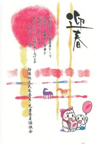 担当地区内の高齢者や独居の人、障害者の方へ年賀状を書き、元気に暮らせるよう励ますメッセージを送っています。また日頃から見守りを行っている事も伝えています。今年も日頃の民生委員児童委員の見守り活動の中で、対象の方々に「本年も元気でお過ごしください」という気持ちを込めて、年賀状を出しました。赤い羽根募金を利用して、向陽地区民児協は毎年この活動を実施しており、感謝しております。本当にありがとうございます。