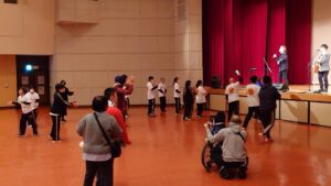 今年はヴィオラ奏者の野島泰史さん、ピアノ奏者の笹原佑里さんの本格的なクラッシックと、毎年来ていただいているカラフルパレットさんのコンサートで楽しみました。カラフルパレットさんのコンサートは、みんな前に出て一緒に踊ったり口ずさんだり、本当に一体になって楽しむことができました。車いすの方も前に出てみんなと一緒に体を動かしていました。最後はカラフルパレットさんと野島さんのコラボもあり、とても感動しました。会員のダンスチーム「エンドレスジュニア」のダンスも披露して楽しんでいただきました。ご支援ありがとうございました。